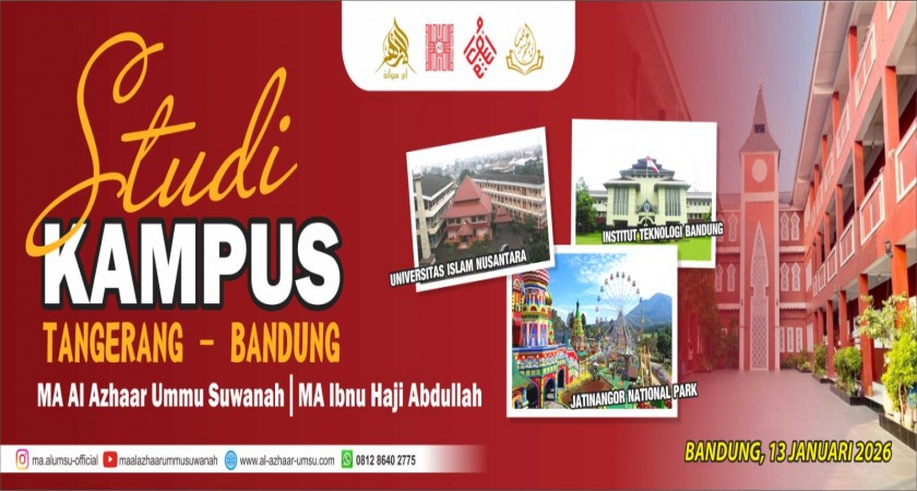 Madrasah Aliyah Al Azhaar Ummu Suwanah melakukan kegiatan rutin yang sudah menjadi program tahunan bagi para siswa kelas XII yaitu studi kampus, kegitan tersebut dilaksanakan pada hari selasa, 13 januari 2026 dengan dua tujuan kampus. Kampus pertama yang di kunjungi yaitu ITB (Institut Teknologi Bandung) dan kampus yang kedua yaitu UNINUS (Universitas Islam Nusantara)
